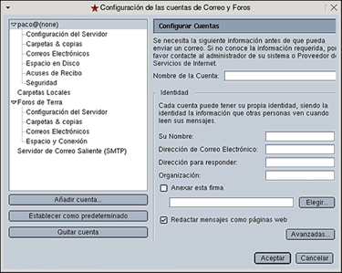 El primer paso para utilizar el Mozilla Mail como lector de news es configurarlo con los datos de nuestro proveedor. El único que necesitamos, puedes verlo si repasas los datos de tu cuenta de correo en Terra es que el servidor de news es: news.terra.es.
